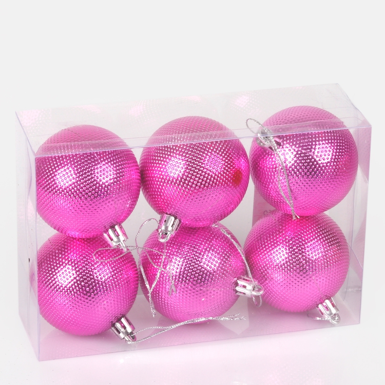 Komplet bombek składa się z sześciu sztuk bombek w jednym kolorze. Różowy kolor idealnie sprawdzi się na wielobarwnej choince lub wystroju świątecznym w pokoju dziewczynki, a złoty będzie uniwersalnym wyborem. Średnica bombek to 6 cm. Posiadają srebrne zawieszki. Dzięki temu, że się nie stłuką, świetnie nadają się do przystrajania choinki przez małe dzieci. Mają fakturę wyglądającą jak lekkie wgłębienia. Zestaw opakowany jest w prostokątne przezroczyste pudełko. Jeśli chcemy, aby na naszej choince zawitał kolor różowy, wybór jest prosty!