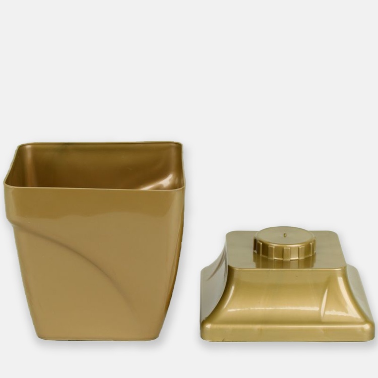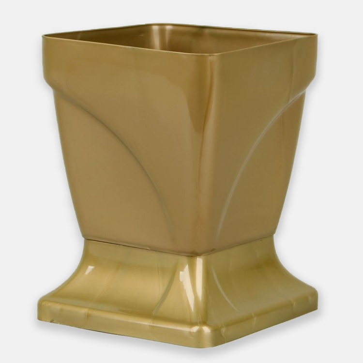 Stylowy Gazon Victoria występuje w dwóch kolorach – złotym oraz ciemno-grafitowym. Dzięki temu, że został wykonany z plastiku, jest lekki, ale jednocześnie wkomponowanie kwadratowej podstawy sprawiło, iż prezentuje się bardzo okazale. Gazon Victoria będzie dobrze wyglądać w różnego rodzaju kompozycjach funeralnych. Wyjmowana podstawa ułatwia czyszczenie oraz przenoszenie gazonu. Bazowa kolorystyka sprawia, iż gazon będzie można dopasować do koloru nagrobka lub samych liter, jakie na nim umieszczono. Produkt z powodzeniem może posłużyć jako donica na kwiaty sztuczne oraz żywe.