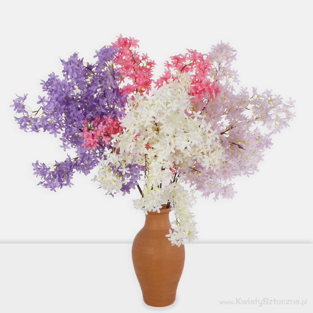 Gałązka bzu o metrowej długości to idealny ozdobnik do okazałych aranżacji florystycznych, który doda wiosennego klimatu. Bez w pastelowych barwach oraz lawendowym i koralowym odcieniu doskonale sprawdzi się jako dekoracja domowych wnętrz, a umieszczona w podłogowym wazonie, z pewnością zwróci uwagę wszystkich gości oraz doda wiosennego klimatu. Gałązki bzu prezentują się realistycznie idealnie imitując naturalną roślinę, przez co wykorzystane w różnych konfiguracjach kwiatowych będą stanowić ekskluzywny dodatek.