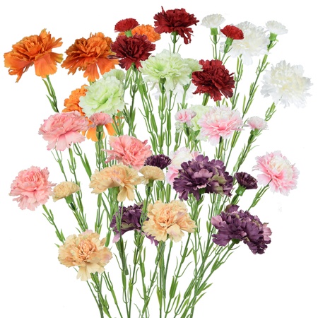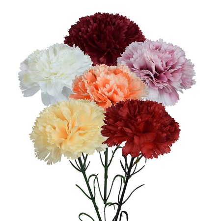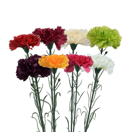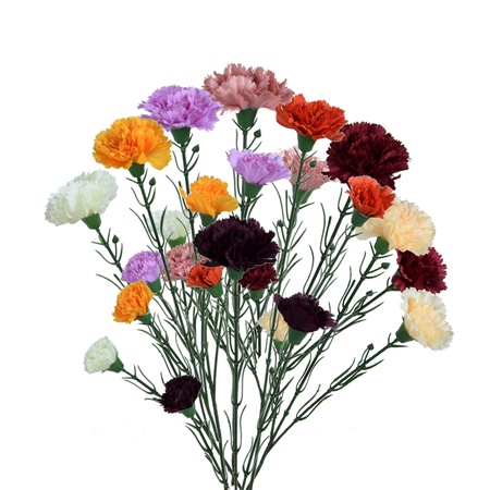 Sztuczne goździki na gałązce znakomicie nadają się do kompozycji florystycznych oraz wszelkich dekoracji. Dostępne w wielu odmianach i kolorach.