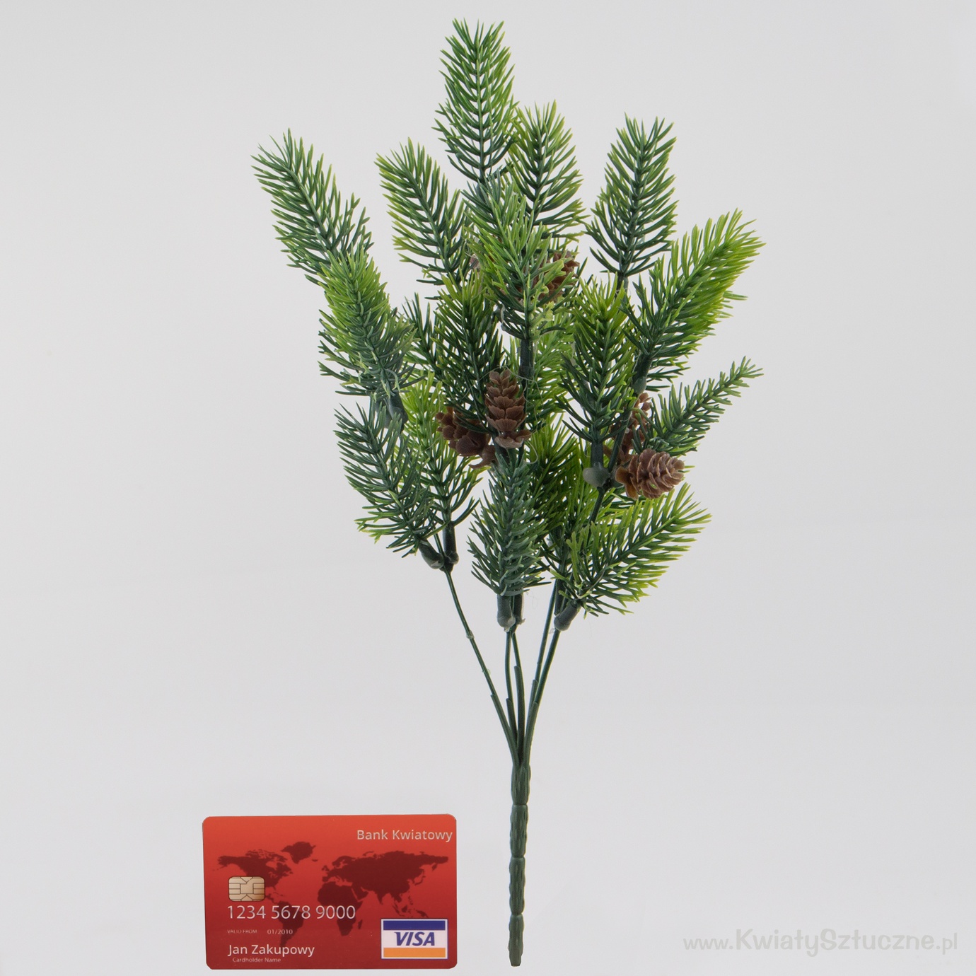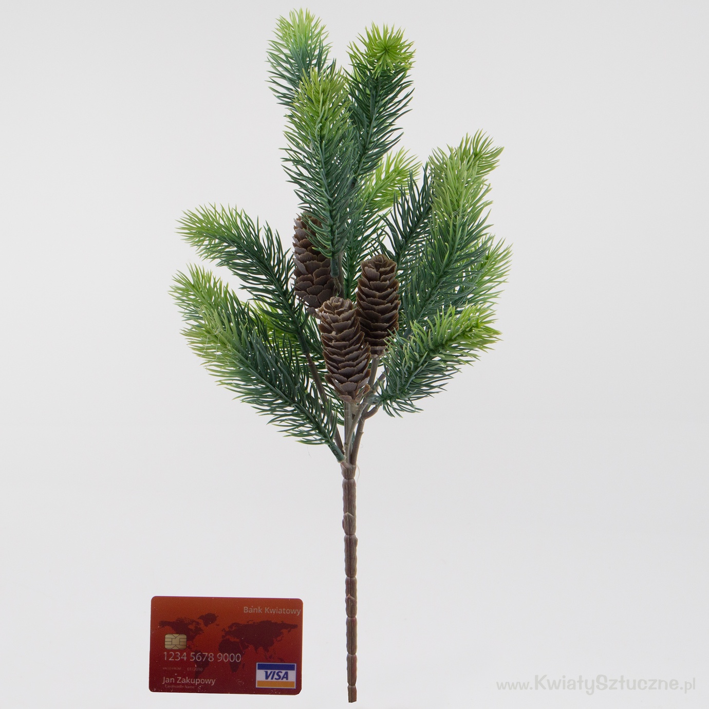 Szeroki wybór zielonych sztucznych gałązek choinek - drzew iglastych, m.in. sosnowych, świerkowych i innych. Gałązki iglaste o różnych wielkościach. Mogą służyć do tworzenia podkładów pod kompozycje, niewielkich drzewek, stroików świątecznych bądź innych bożonarodzeniowych dekoracji.