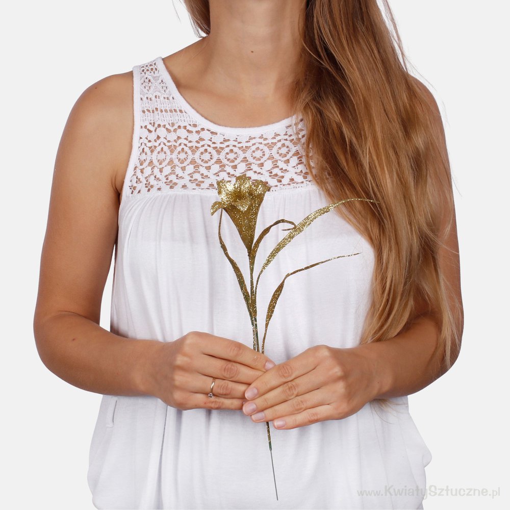 Kwiat lilii wykonany jest odpornego i wytrzymałego materiału, który wiernie odwzorowuje naturalny wygląd rośliny. Dzięki dostępnym wersjom kolorystycznym z łatwością wybierzesz model odpowiadający Twoim preferencjom. Kwiaty obsypane złotym i srebrnym brokatem będą idealnym świątecznym dodatkiem do wymyślonej aranżacji, natomiast naturalne odcienie kwiatu, również w całości połyskujące mogą stanowić bazę do stroików na stół, świeczników lub innych zimowych dekoracji. Każdy egzemplarz zawiera drucianą łodygę wykończoną plastikową obudową, którą możesz dowolnie kształtować, łatwo wykonując dekoracje.