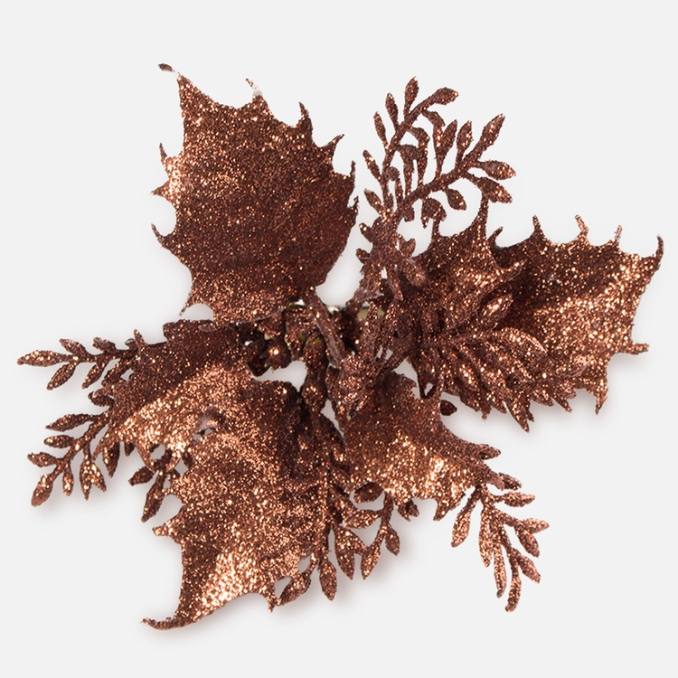 Bogato zdobiona, brokatowa poinsecja na klipsie to bardzo klasyczna ozdoba świąteczna, która wprowadza do wnętrza wyjątkowy nastrój. Mieniące się w świetle drobinki brokatu zapewniają w domu przytulną, świąteczną atmosferę. Ten popularny w okresie Bożonarodzeniowym kwiat doskonale udekoruje wieńce adwentowe, świąteczne drzewka czy stroiki. Specjalny klips, w który zaopatrzona została ozdobna poinsecja z brokatem, pozwala na jej różnorodne wykorzystanie. Świetnie sprawdzi się na przykład jako dekoracja do ozdobienia pakowanych prezentów.