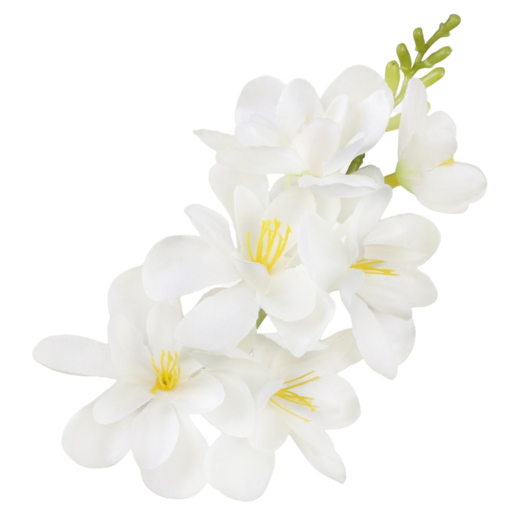 Kwiatostan frezji złożony z sześciu kwiatów wykonanych z satyny. Dostępny w bogatej ofercie kolorystycznej.