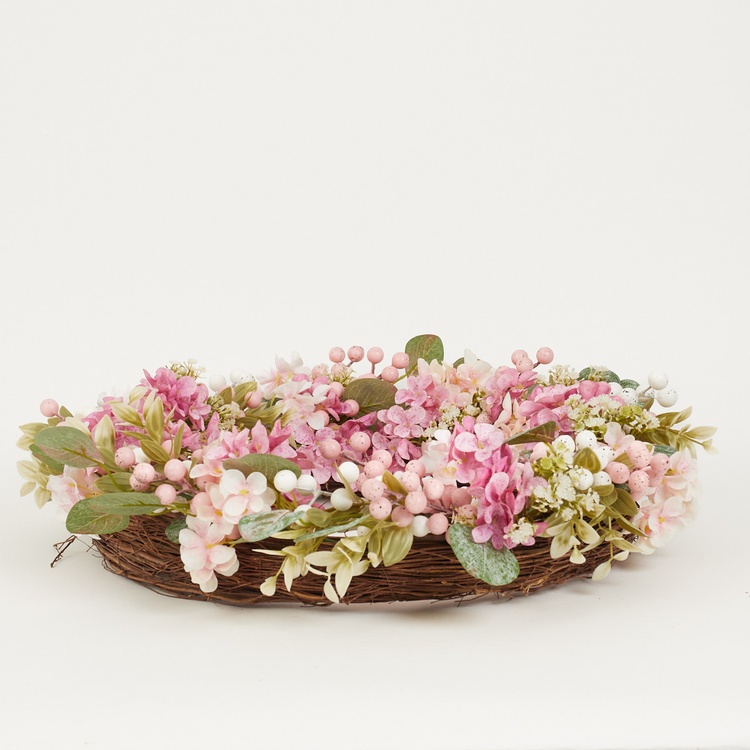 Wianek z różowymi kwiatami 50 cm TF28