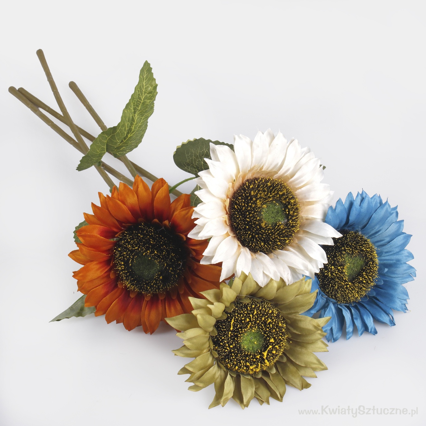 Długie gałązki słonecznika w niespotykanym zestawieniu kolorystycznym. Promowane do wystroju wnętrz o delikatnym i romantycznym charakterze.
