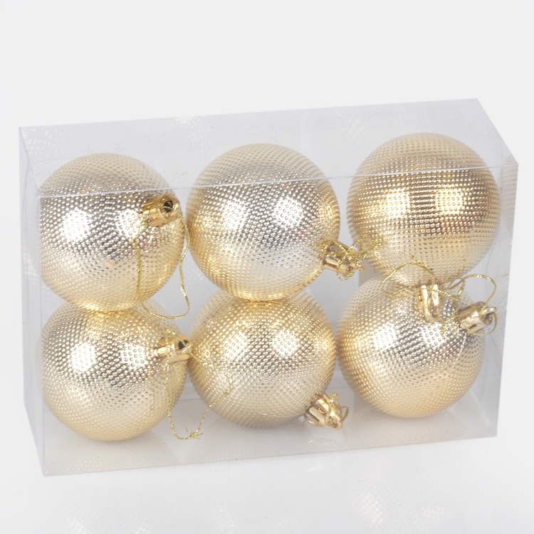 Komplet bombek składa się z sześciu sztuk bombek w jednym kolorze. Różowy kolor idealnie sprawdzi się na wielobarwnej choince lub wystroju świątecznym w pokoju dziewczynki, a złoty będzie uniwersalnym wyborem. Średnica bombek to 6 cm. Posiadają srebrne zawieszki. Dzięki temu, że się nie stłuką, świetnie nadają się do przystrajania choinki przez małe dzieci. Mają fakturę wyglądającą jak lekkie wgłębienia. Zestaw opakowany jest w prostokątne przezroczyste pudełko. Jeśli chcemy, aby na naszej choince zawitał kolor różowy, wybór jest prosty!